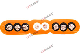 天車扁電纜采用柔性扁平結構設計,作為天車設備的動力或控制連接電纜移動安裝使用。天車扁電纜一般采用隨行懸掛式安裝,也被稱作天車(行車)隨行扁電纜。電纜兩側可根據需要置入高強度的鍍鋅抗拉軟鋼絲以增強電纜的抗拉性能。專用外護套復合料,可在-15℃低溫下仍然操持柔軟,阻燃。